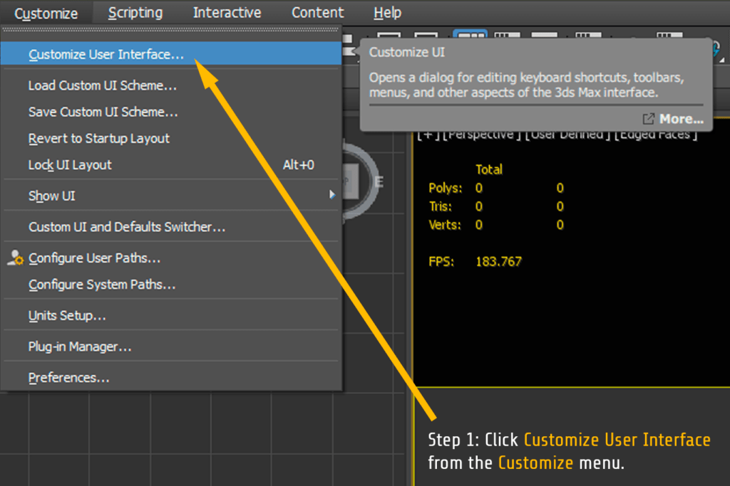 Then run 3ds max go to customize menu and choose load custom ui scheme, in the open window choose files of type: Getting started with autodesk 3ds max 2021 32 figure 2.2 the 3ds max interface includes four viewports, each with a different view. Then run 3ds max go to customize menu and choose load custom ui scheme, in the open window choose files of type: